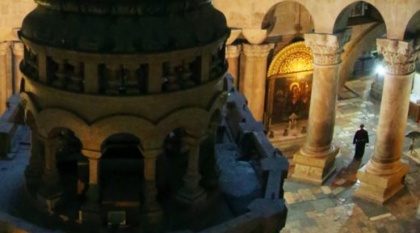 Eine Pilgergruppe aus der Pfarrei St. Anna in München wurde Ende Oktober Zeuge eines seltenen Ereignisses in der Grabeskirche in Jerusalem: Ein tonnenschwerer Stein wurde unter viel Aufwand abtransportiert.