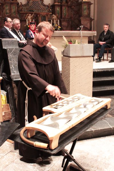 Die Gebete wurden von Musik umrahmt, die von einem Klangkünstler mit verschiedensten Instrumenten aus Glas, Holz und Stein gestaltet wurde. Zum Abschluss wurde für die Menschen in Aleppo eine Kollekte gehalten, die 900.- € erbrachte.