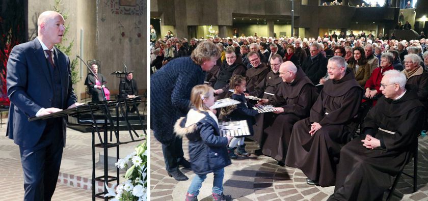 Dass es für den Ort Neviges dennoch einen gewaltigen Umbruch bedeutet, wurde in den Worten von Bürgermeister Dirk Lukrafka deutlich. Die Ankündigung des Weggangs der Franziskaner habe zunächst einmal große Unsicherheit ausgelöst, wie es weitergeht. Mit Bezug auf den hl. Franziskus meinte er: „Gegen die Nacht können wir nicht ankämpfen, aber wir können ein Licht anzünden.“